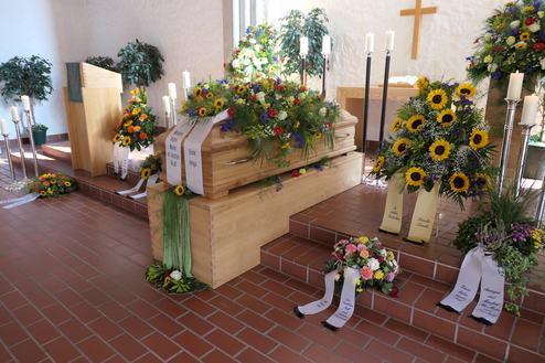 Ein Grab mit Blumen zu schmücken, um von einem Menschen Abschied zu nehmen, dieser Brauch ist sehr alt. Für die Angehörigen ist es wichtig, für den letzten lieben Gruß ein Floristik-Unternehmen zu finden, das eine dem Anlass entsprechende, hohe Qualität zu einem angemessenen Preis liefert. Gerne übernehmen wir diesen Service oder die Vermittlung für Sie und arrangieren alles Weitere zum Thema Dekoration in der Kapelle oder Kirche.