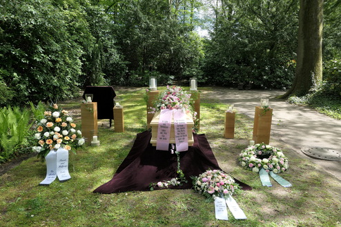 Nicht zuletzt wegen der aktuellen Lage durch Corona haben wir vermehrt unsere Trauerfeiern und Beisetzungen im Freien durchgeführt. Bei gutem Wetter bietet dies eine unverwechselbare und besondere Atmosphäre. Bei etwas ungünstigeren Wetterbedingungen haben wir die Möglichkeit Pavillons zum Schutz aller Trauergäste und Musiker aufzubauen.