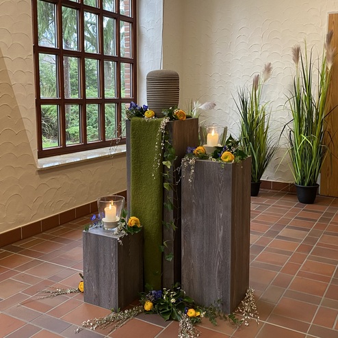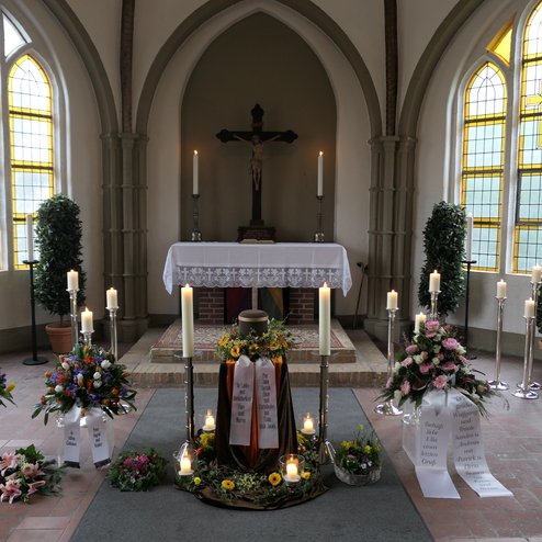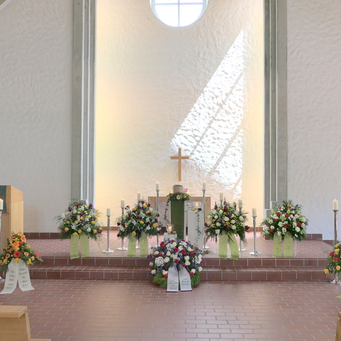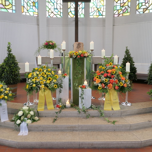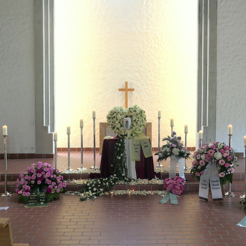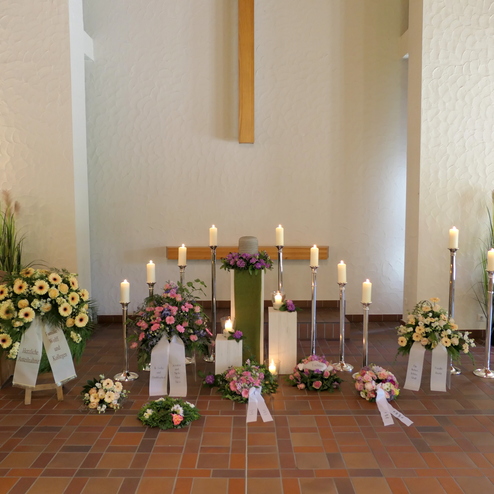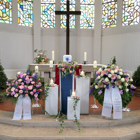 Ein Grab mit Blumen zu schmücken, um von einem Menschen Abschied zu nehmen, dieser Brauch ist sehr alt. Für die Angehörigen ist es wichtig, für den letzten lieben Gruß ein Floristik-Unternehmen zu finden, das eine dem Anlass entsprechende, hohe Qualität zu einem angemessenen Preis liefert. Gerne übernehmen wir diesen Service oder die Vermittlung für Sie und arrangieren alles Weitere zum Thema Dekoration in der Kapelle oder Kirche.